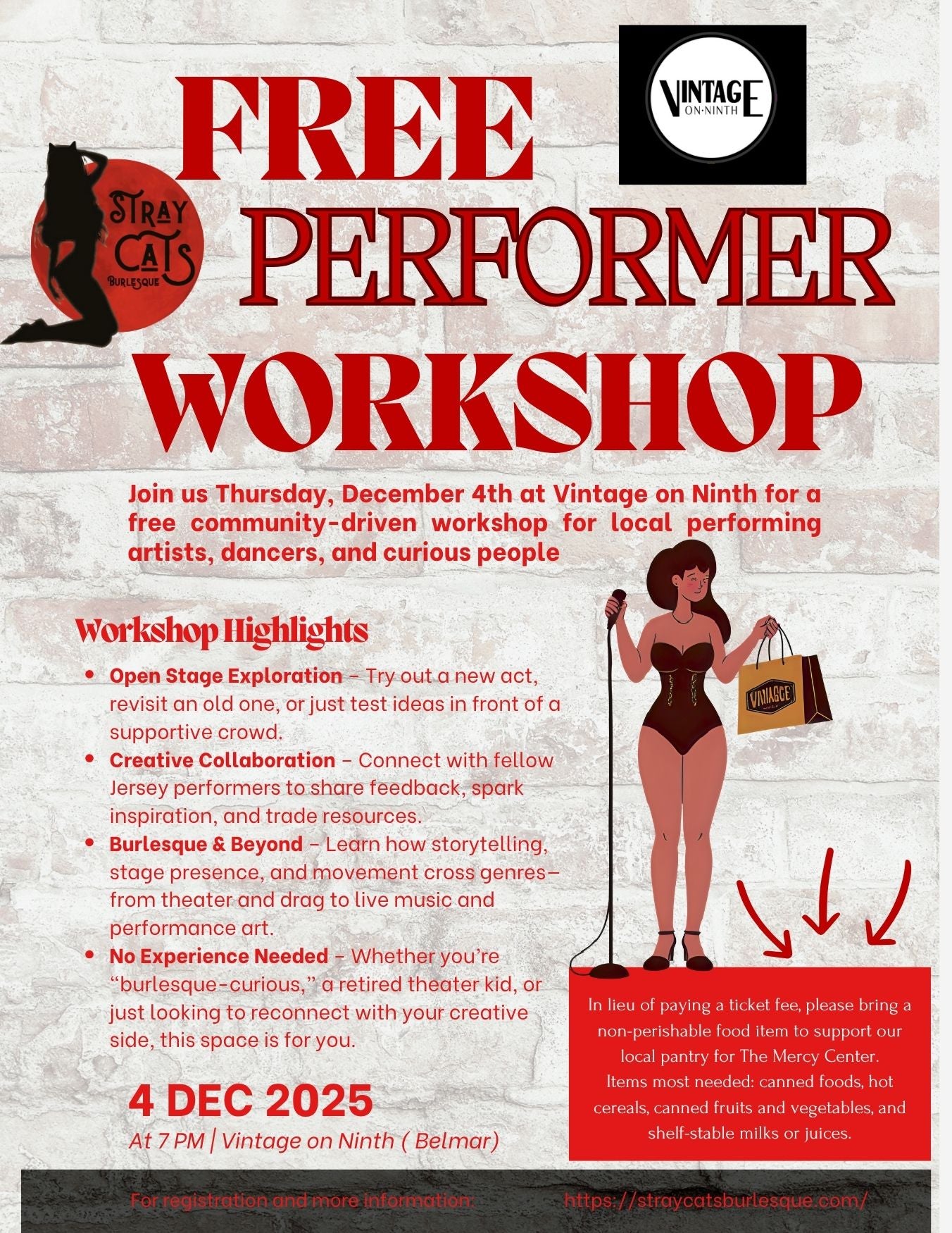 A free community night for Jersey performers to connect, collaborate, and hang out. Whether you’re burlesque-curious, a former theater kid, or just itching to try something new—this is your space to test ideas, workshop acts, and meet others who get it.